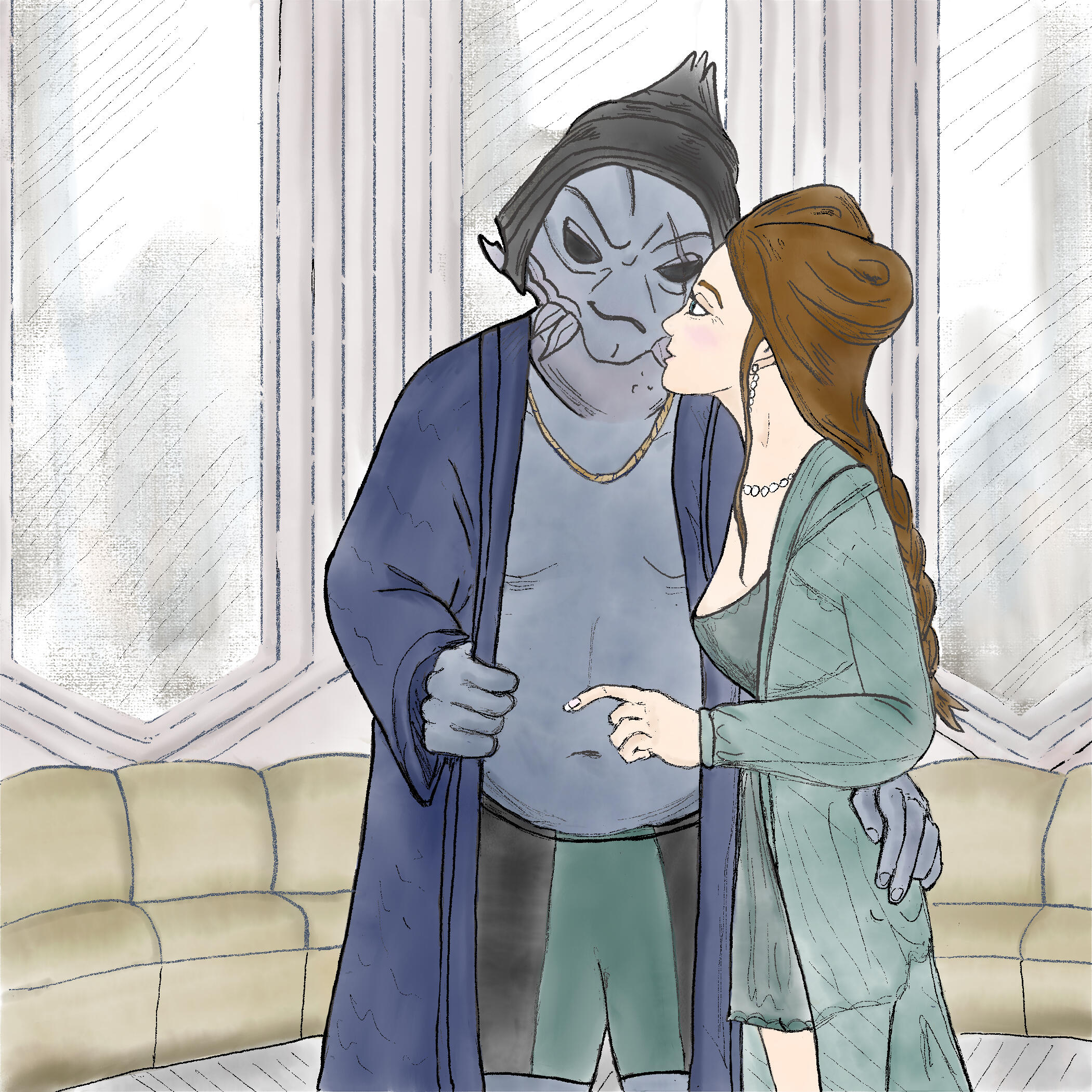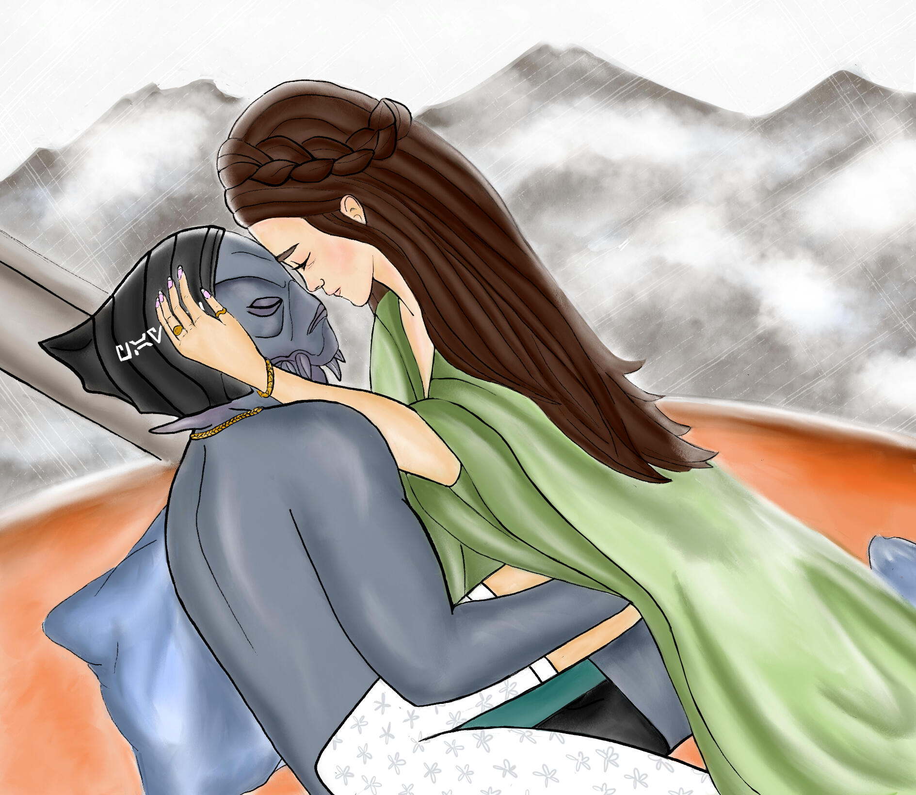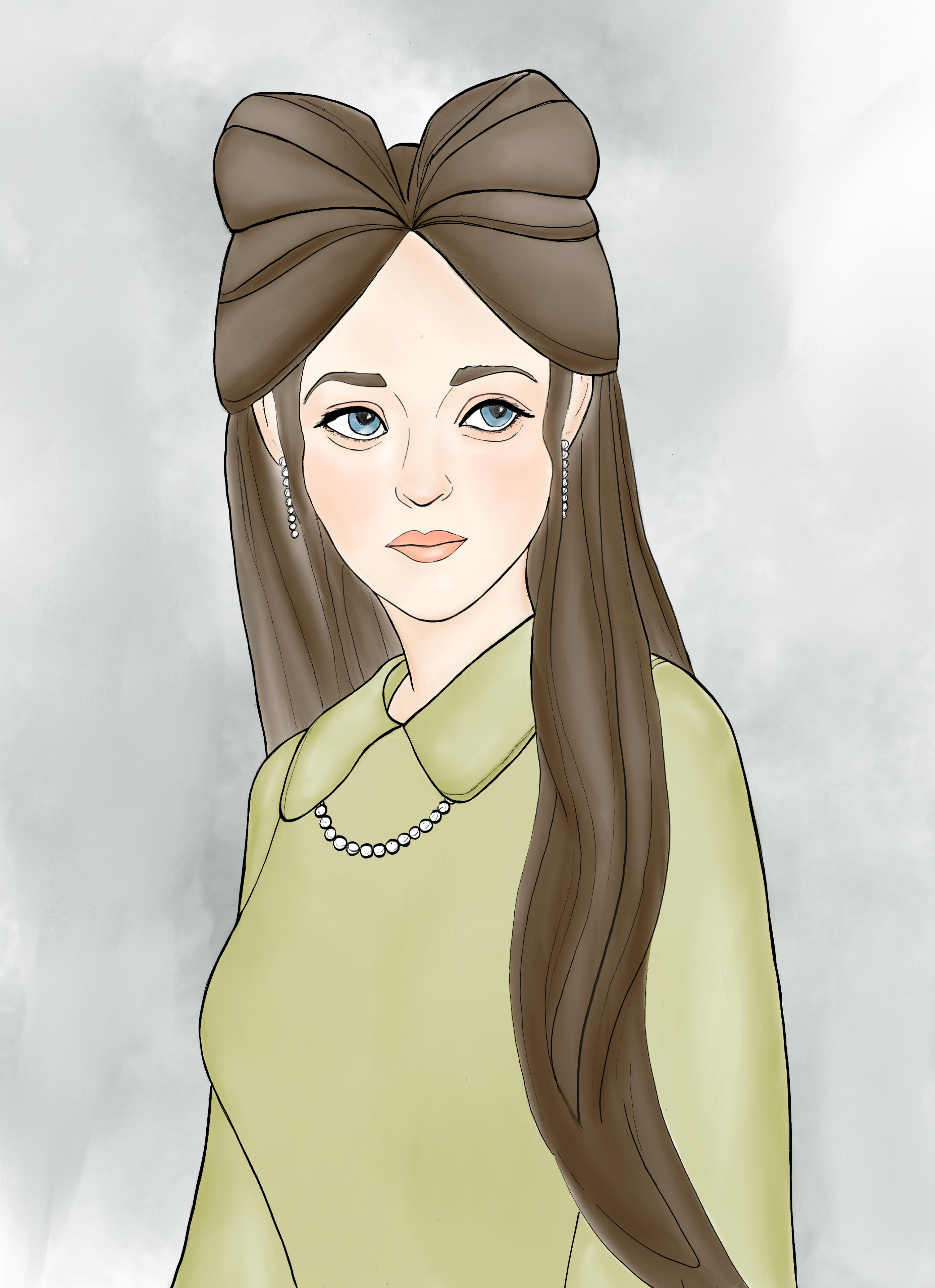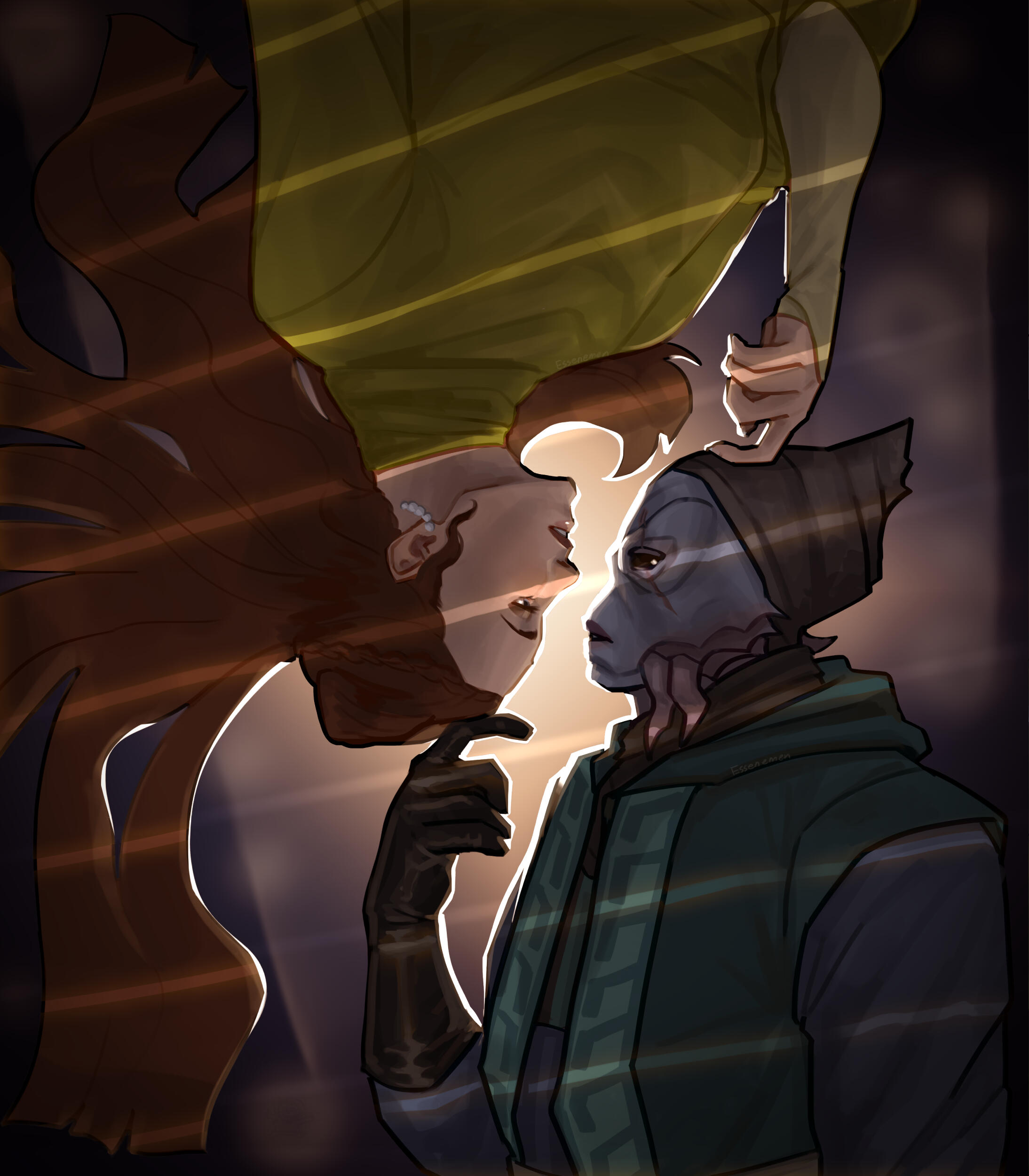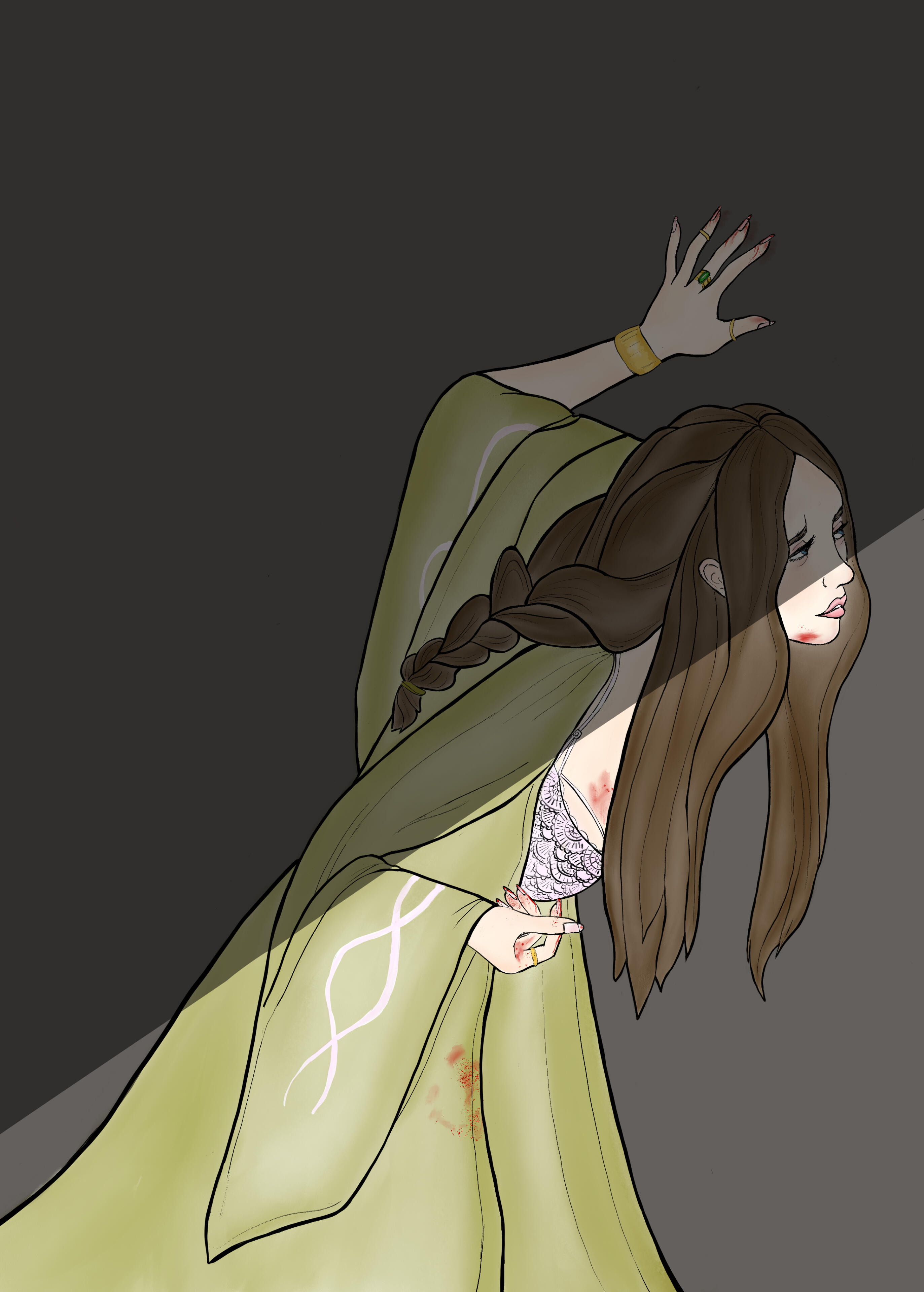 HAIR/STYLE :: Naturally dark brown, slightly wavy, and long, hitting her lower back as is customary for (an unmarried) Aargauun elite lady. Often it's braided and partially or fully pinned up (the latter usually for her job).