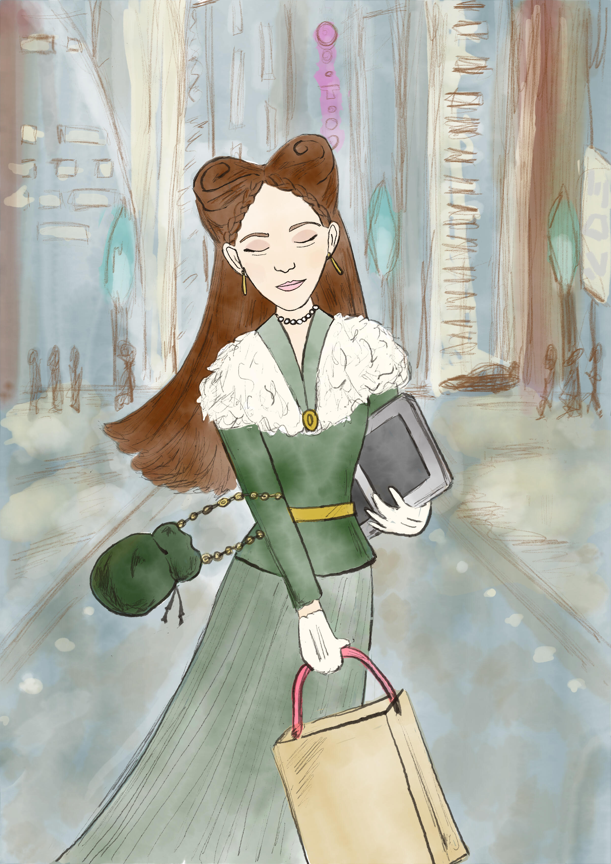 DRESS :: Outside of classy workwear, she gravitates to shades of green and modest, high-class ensembles. Dresses predominate her large wardrobe along with synthfur coats, satin and white leather gloves, and gold and pearl jewelry and accessories. Nails are acrylics.