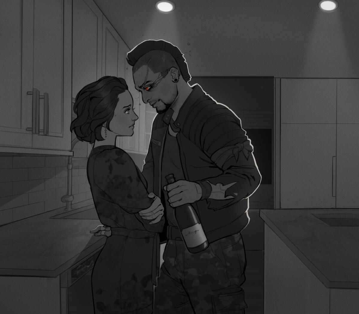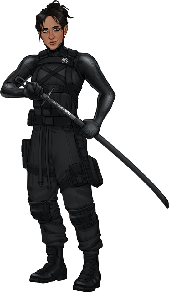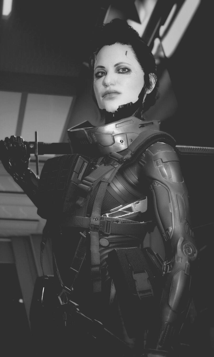 Neomilitarism. Practical gear for and in between ops. A tomboy. Hates getting fancy. Predominantly wears the color black. Combat boots preferred. Pants preferred. No heels ever. Any plating or exposed cyberware she has is always black.MAKEUP