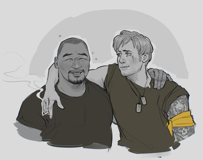 in one of the many patrol towers, hunting dangerous wildlife that gets too close to the compound, and the cafeteria/sneaking into the kitchen to bug his best buddy, Mac Mays (@badtrigger). On occasion, he might offer to be a porter for Brianne's luggage when she visits since she often brings gifts (such as cases of hot sauce for the Pirates and select few Privateers) and needs them carried later to the helicopter for transport to the South Island.ENDING